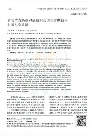 [2]中華檢驗(yàn)醫(yī)學(xué)雜志2021年5月第44卷第5期《早期結(jié)直腸癌和癌前病變實(shí)驗(yàn)診斷技術(shù)中國(guó)專(zhuān)家共識(shí)》